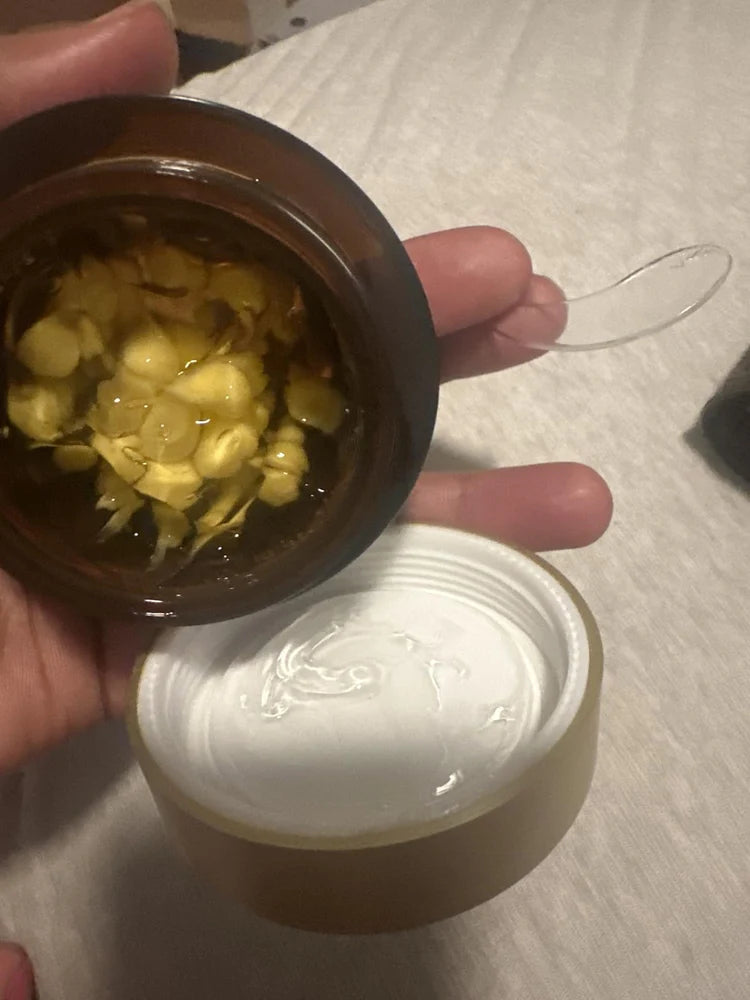 Mix the vitamin capsule with the clear gel in a ratio that suits your skin type.